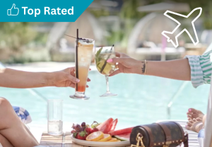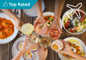 8+ person return Island Air Transfer with Prosecco at departure, red carpet boarding and scenic loop of Rottnest Island before touchdown, with island airport transfers to Isola Bar El Cibo restaurant with set menu.